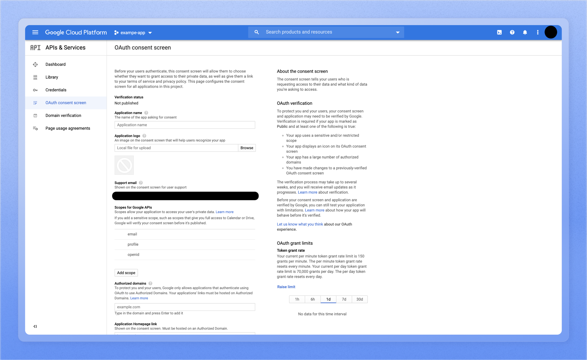 - Configure the OAuth consent screen with information about the app.